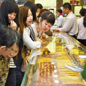 工厂再将炼造好的金条或是黄金首饰供货给大金店或是黄金批发市场,然后再经过金店的进一步包装加工,最后就呈现在消费者面前售卖。