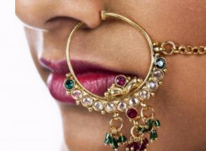 在印度的宗教里,在鼻子上穿孔戴鼻环也是一种对印度教女神的尊重,而黄金又是一种身份的象征,所以逐渐衍生出“为新娘打鼻环”的习俗。